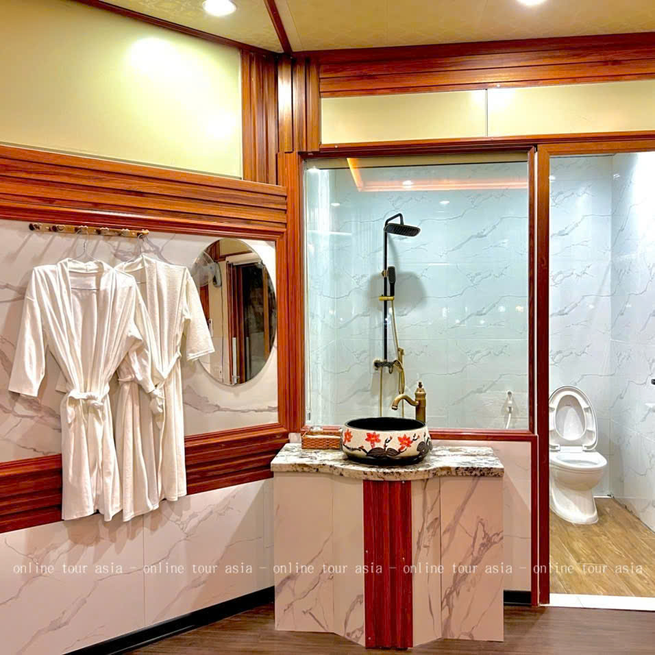 Tất cả phòng ngủ loại 1 giường kích thước 2m, có tolet riêng.