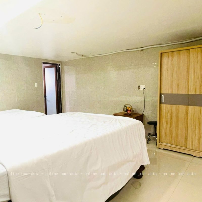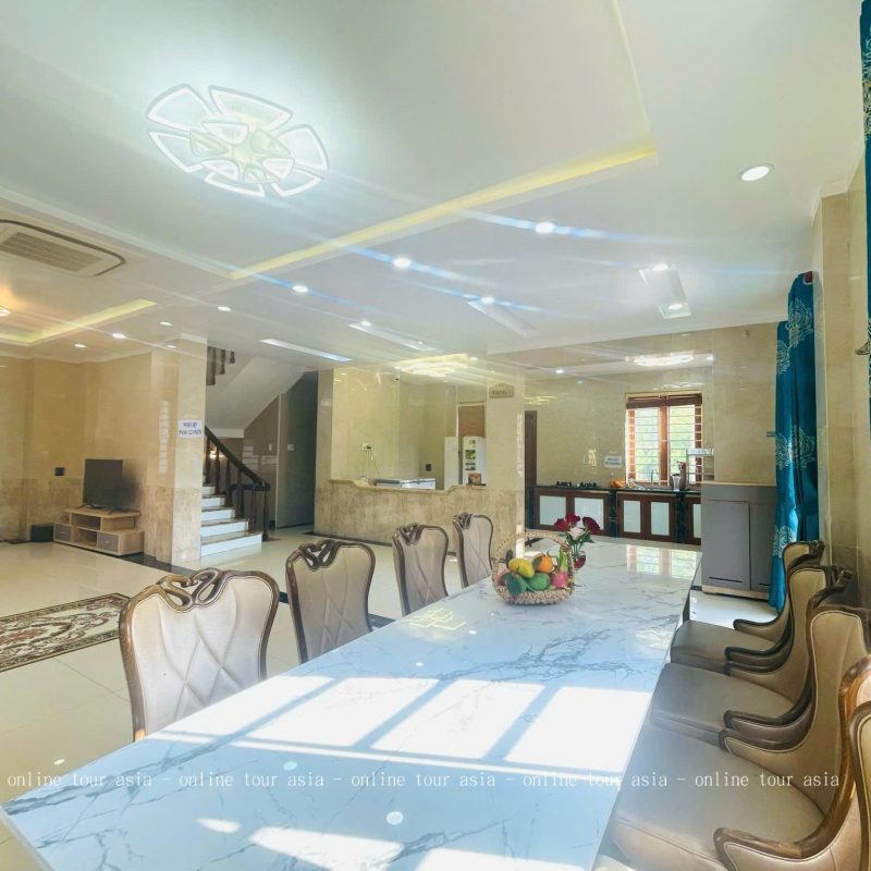 – Chi tiết phụ thu và tiêu chuẩn giường ngủ: Tiêu chuẩn đặt phòng tại đây là 1 giường dành cho 2 người lớn. Đối với các thành viên phát sinh, villa áp dụng mức phí phụ thu rất hợp lý: trẻ em từ 6 đến dưới 12 tuổi là 150.000 VNĐ/bé, và người lớn phát sinh là 200.000 VNĐ/người. Chính sách này giúp các đoàn khách linh hoạt hơn trong việc sắp xếp số lượng thành viên mà vẫn đảm bảo ngân sách tối ưu.